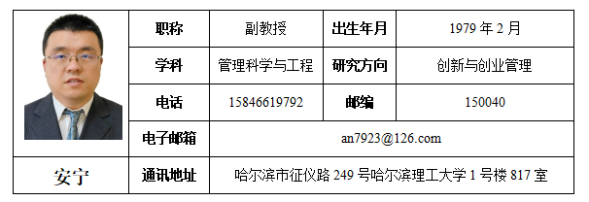 2011.9-2025.7,哈尔滨理工大学,经济与管理学院,副教授(2012.11被评为硕士生导师)