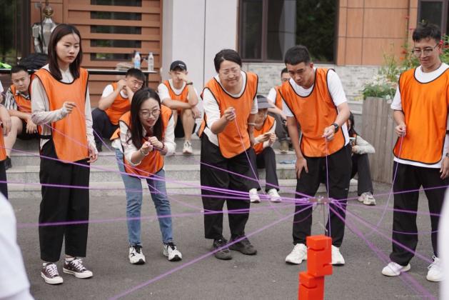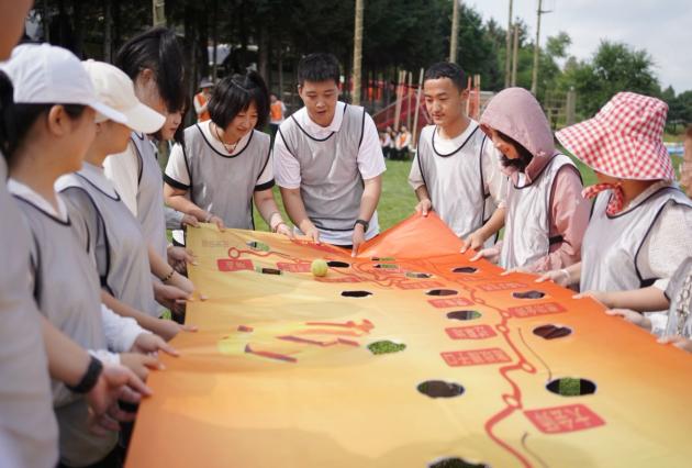 本次拓展训练围绕“实战化、场景化、模块化”设计,设置“毛毛虫竞技”、“铁甲战车”、“水果消消乐”、“合力筑塔”、“重走长征路”、“激情节拍”六大核心项目。项目精准对接人才培养中“团队管理、资源整合、决策执行”等核心能力要求。“毛毛虫竞技”考验节奏协同与领导力;“铁甲战车”模拟资源有限场景下的优化配置;“合力筑塔”强化细节把控与风险规避;“重走长征路”融入战略规划与信任教育;“激情节拍”点燃团队凝聚力。每个项目结束后,教练与教师共同引导复盘,结合管理理论解析问题,实现“实践体验—理论升华—能力落地”闭环。